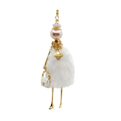 Carosa lleva elegante Falda de pedreria con sombrero, Charm de bolso esférico y combinación de dorados y azules